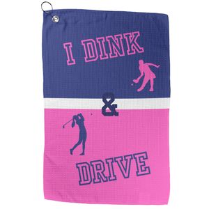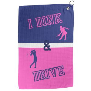 **I DINK & DRIVE** ๐๏ธโโ๏ธโณ๐ Fore! Swing into the perfect game with our exclusive golf towel that says "I dink & drive" โ the ultimate accessory for those who ace both the pickleball court & the golf course! Elevate your style & performance with this clever combo, because who says you can't smash on the court & drive on the green? ๐๐๐. It's made of non-abrasive materials & free of harsh chemicals. Also has an easy-to-attach hook for simple access &ย usability.