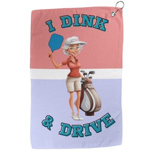 **I DINK & DRIVE** 🏌️♂️⛳🏓 Fore! Swing into the perfect game with our exclusive golf towel that says "I dink & drive" – the ultimate accessory for those who ace both the pickleball court & the golf course! Elevate your style & performance with this clever combo, because who says you can't smash on the court & drive on the green? 🏓🚗🌟. It's made of non-abrasive materials & free of harsh chemicals. Also has an easy-to-attach hook for simple access & usability.